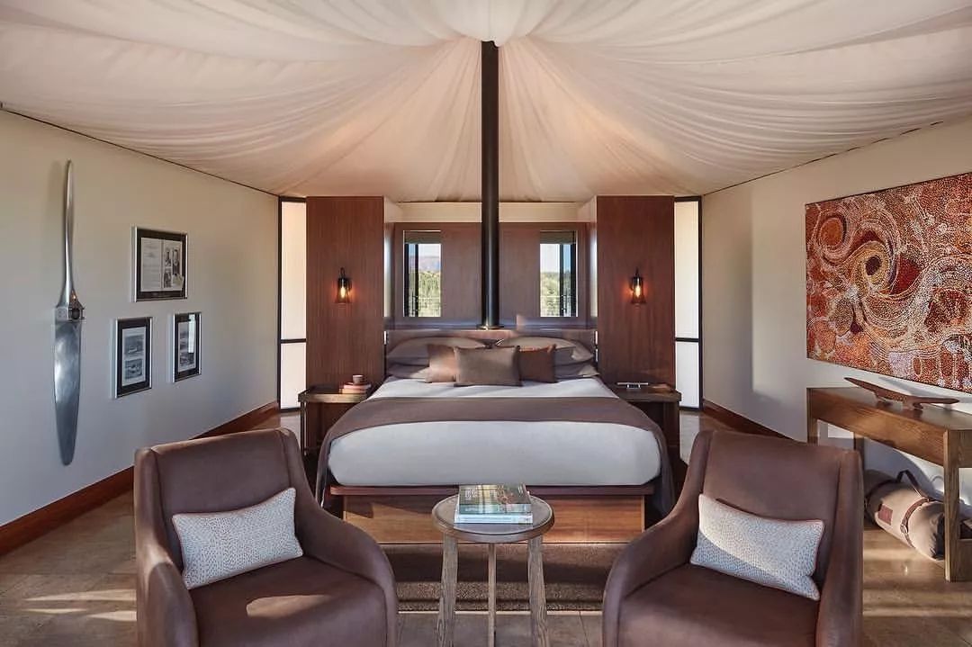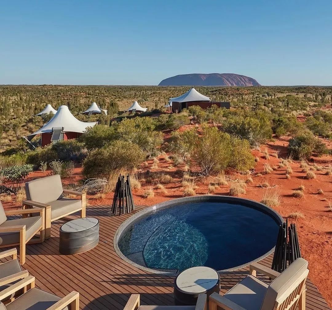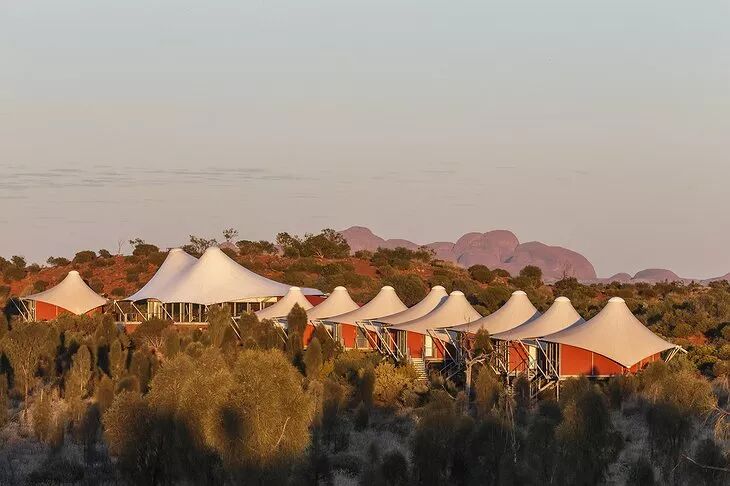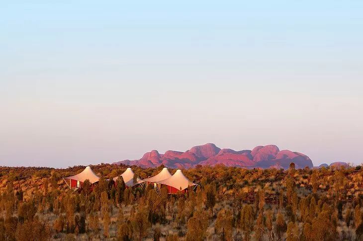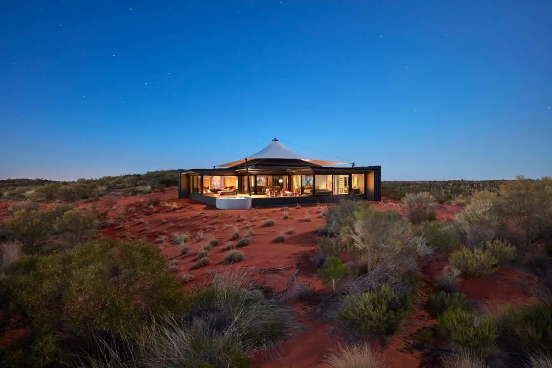 Longitude 131°是澳洲一家野奢度假村,整個(gè)度假村位于被聯(lián)合國(guó)教科文組織評(píng)為自然和文化雙遺產(chǎn)的“烏魯魯-卡塔丘塔國(guó)家公園”的紅色沙丘上,毗鄰世界上最大的單體巖石——艾爾斯巖。這家度假村剛好處在地球經(jīng)度的131度線上,Longitude 131°的名字由此而得。
