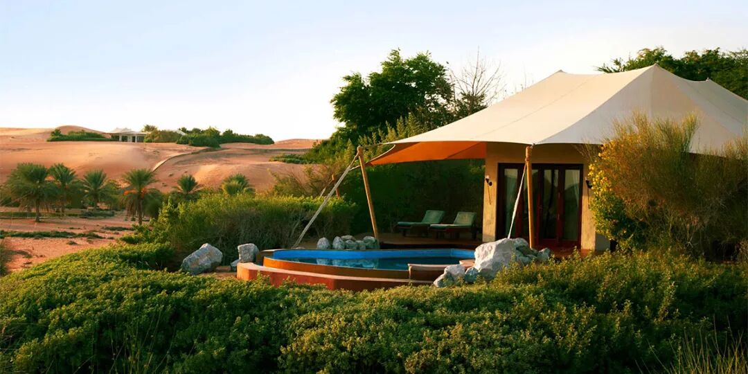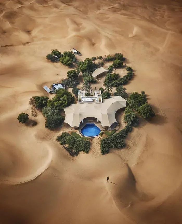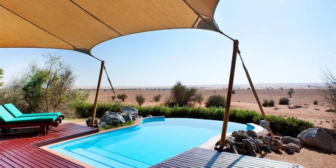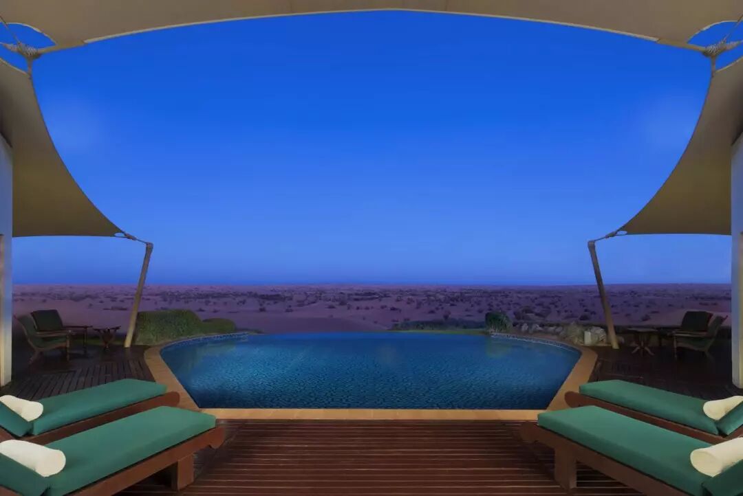 每個(gè)房間有一個(gè)獨(dú)立恒溫泳池,鑲嵌在沙漠之中,但是卻沒(méi)有一粒沙子。
